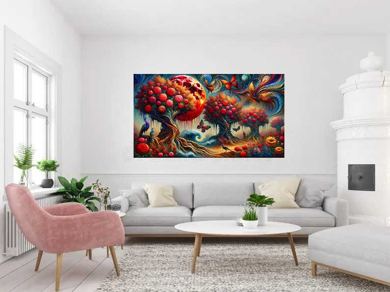 Aesthetic Appeal: Choose art that resonates with your personal style or complements your home’s decor. This could include vibrant canvas paintings, serene landscapes, or abstract pieces that add color and personality to your space. Art with elements like nature (e.g., lakes, swans, flowers, or trees) can evoke calmness and beauty, as you’ve previously noted.