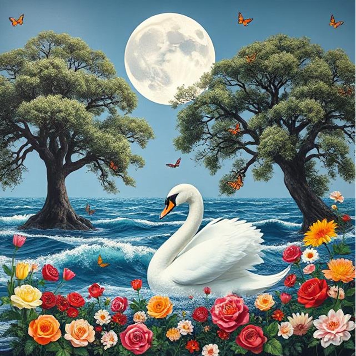 Symbolism: Elements in the picture carry symbolic meanings. For example, a white swan often represents grace, purity, or love, while a lake can symbolize calmness or reflection. Flowers might signify growth or beauty, and trees can represent strength or life. These symbols resonate with viewers, consciously or subconsciously, adding depth to the experience.